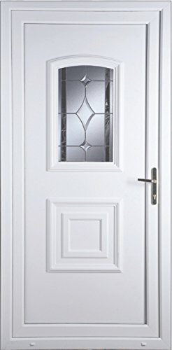 PRODUCT DESCRIPTIONS:Columbus Bevel Border uPVC Door, 840mm x 2085mm. Door Opens Inwards. Hinged On The Left. Sill Supplied With Door & amp; Supplied Pre Hung. Chrome Letterplate. Door Specification: High quality 70mm grade 'A' Virgin Polymer, which is UV stabilised. White both sides. 28mm uPVC stabilised panel to protect against discolouration. Internally beaded. Toughened frosted safety glass. 3 high quality butt hinges. 6 point locking system. Lock cylinder with 3 keys. Lever/Lever high security handle configuration in Chrome. (Toplights, Sidelights or Flag Windows are available upon request)