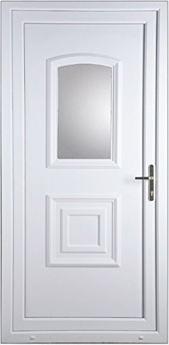 PRODUCT DESCRIPTIONS:Columbus Clear Glazed uPVC Door, 840mm x 2085mm. Door Opens Inwards. Hinged On The Left. Sill Supplied With Door & amp; Supplied Pre Hung. Chrome Letterplate. Door Specification: High quality 70mm grade 'A' Virgin Polymer, which is UV stabilised. White both sides. 28mm uPVC stabilised panel to protect against discolouration. Internally beaded. Toughened frosted safety glass. 3 high quality butt hinges. 6 point locking system. Lock cylinder with 3 keys. Lever/Lever high security handle configuration in Chrome. (Toplights, Sidelights or Flag Windows are available upon request)