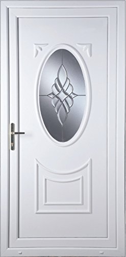 PRODUCT DESCRIPTIONS:Jamaica Bevel Cluster uPVC Door, 840mm x 2085mm. Door Opens Inwards. Hinged On The Right. Sill Supplied With Door & amp; Supplied Pre Hung. Chrome Letterplate. Door Specification: High quality 70mm grade 'A' Virgin Polymer, which is UV stabilised. White both sides. 28mm uPVC stabilised panel to protect against discolouration. Internally beaded. Toughened frosted safety glass. 3 high quality butt hinges. 6 point locking system. Lock cylinder with 3 keys. Lever/Lever high security handle configuration in Chrome. (Toplights, Sidelights or Flag Windows are available upon request)