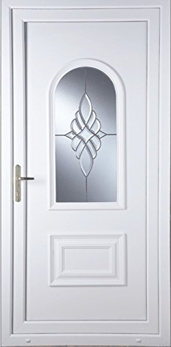 PRODUCT DESCRIPTIONS:Cain Bevel Cluster uPVC Door, 840mm x 2085mm. Door Opens Inwards. Hinged On The Right. Sill Supplied With Door & amp; Supplied Pre Hung. Chrome Letterplate. Door Specification: High quality 70mm grade 'A' Virgin Polymer, which is UV stabilised. White both sides. 28mm uPVC stabilised panel to protect against discolouration. Internally beaded. Toughened frosted safety glass. 3 high quality butt hinges. 6 point locking system. Lock cylinder with 3 keys. Lever/Lever high security handle configuration in Chrome. (Toplights, Sidelights or Flag Windows are available upon request)